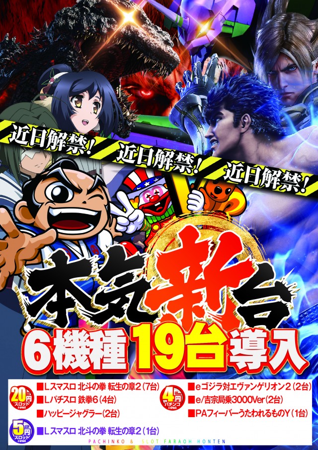 【本気新台】6機種19台導入!最新台朝イチ9時OPEN!