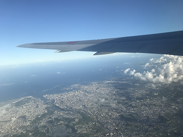 沖縄にいけてうれしいといった様子で、飛行機での移動中には外の風景を写真におさめていた。