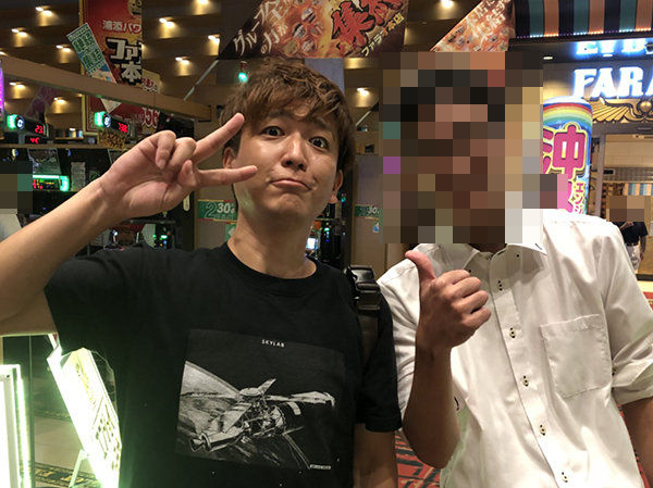 ホールに到着後は、すでに1万回転を達成したといわんばかりの元気なポーズを披露。テンションの高さを武器に頑張ってくれ!