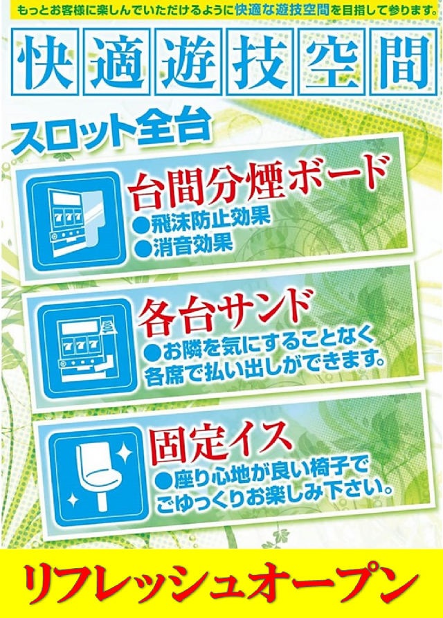 09:00 ~ 23:30(ぱちんこ)23:45(スロット) |