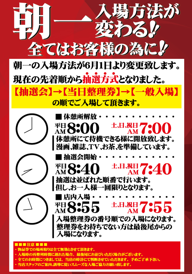 抽選開始時間 平日8:40 土・日・祝日7:40 |