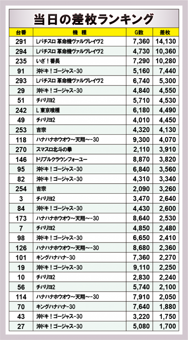 ※差枚数順に掲載しています。