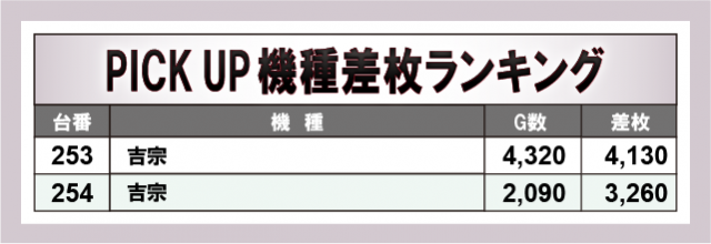 30台ランキング上位に君臨した機種は単発的な好結果にとどまらず、機種単位で安定した好調さが確認できる内容となっていた。上位に食い込んだ台だけでなく、同機種の他台でも高稼働・プラス差枚が見られ、島全体として底上げされた印象だ。