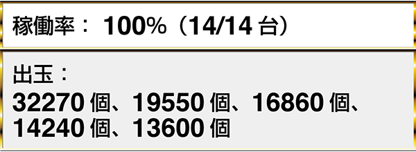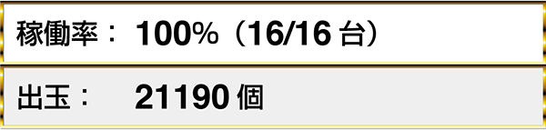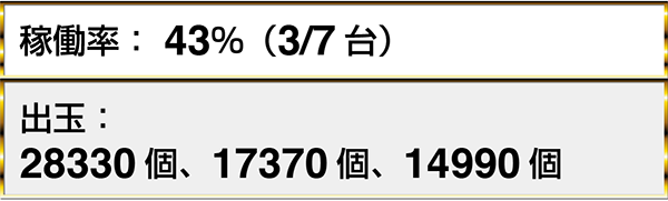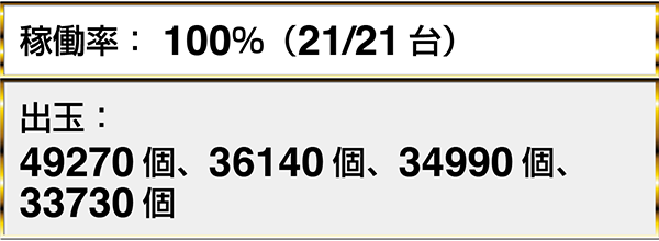 『ぱちんこCR真・北斗無双』や『CR真・花の慶次2〜漆黒の衝撃 2400』など、3機種以上が稼働率100%。
