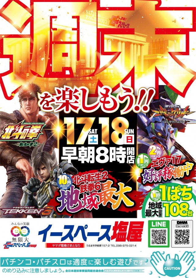人気機種勢揃い!週末もイースペース塩屋店で楽しもう!!