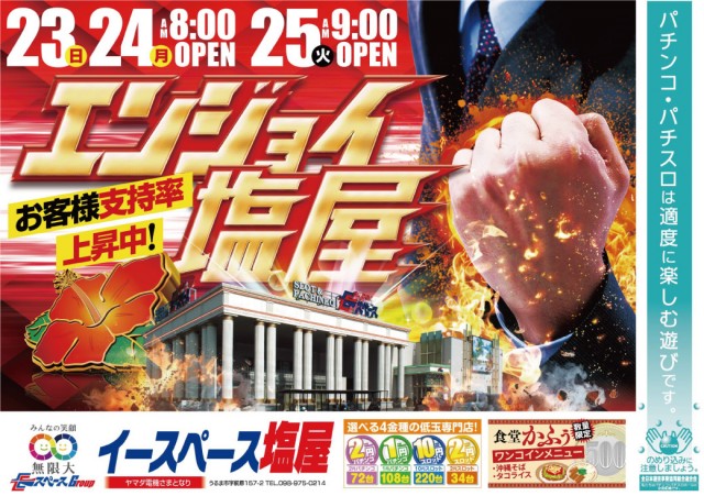 エンジョイ塩屋!!!低玉専門店で人気機種を楽しもう!!!!