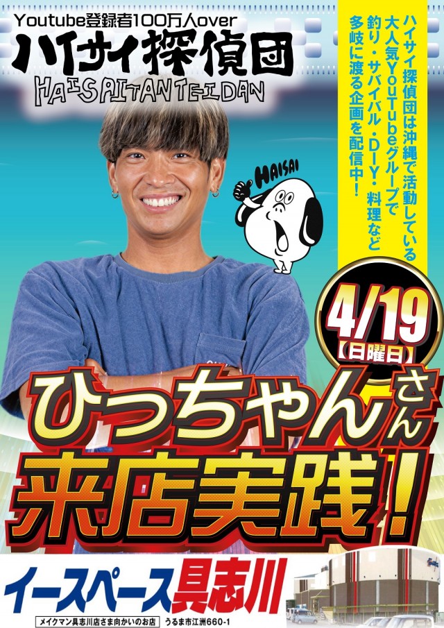 4月19日日曜日ハイサイ探偵団ひっちゃんさん実践来店!!!