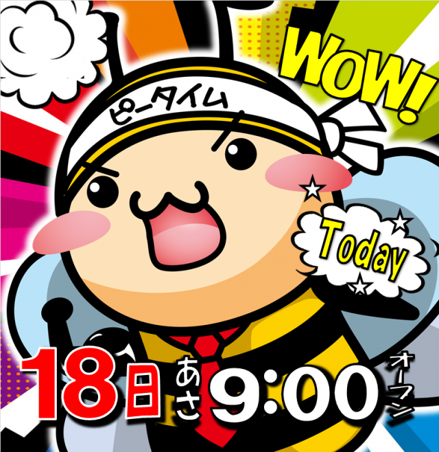 本日ピーのじかん‼豪華賞品が当たる抽選会も‼絶対来店‼