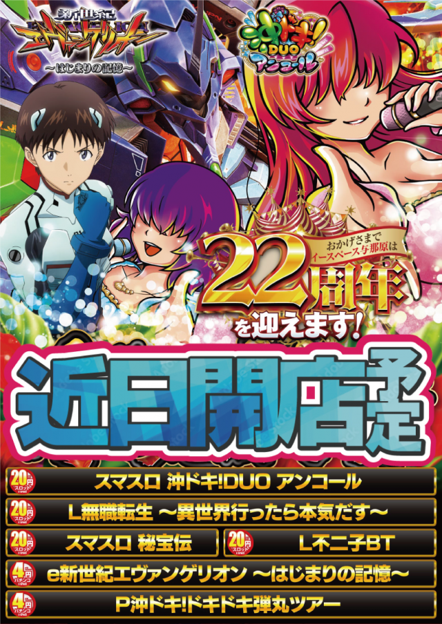 お陰様で22周年♪最新機種本日12時OPEN決定♪