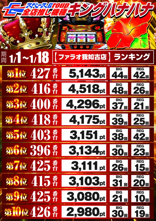 1位 1月13日(火) 2位 1月12日(月) 3位 1月21日(水)