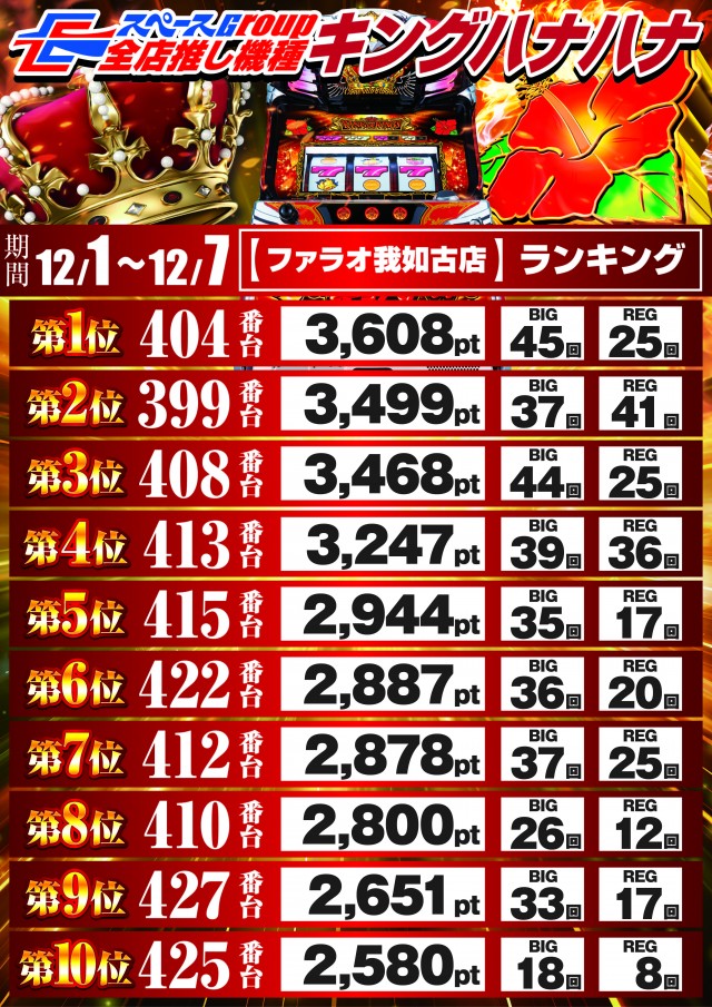 1位 11月13日(木) 2位 11月12日(水) 3位 11月11日(火)