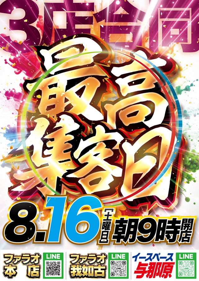 エンジョイファラオ後半戦に期待下さい!3店合同で魅せる!!