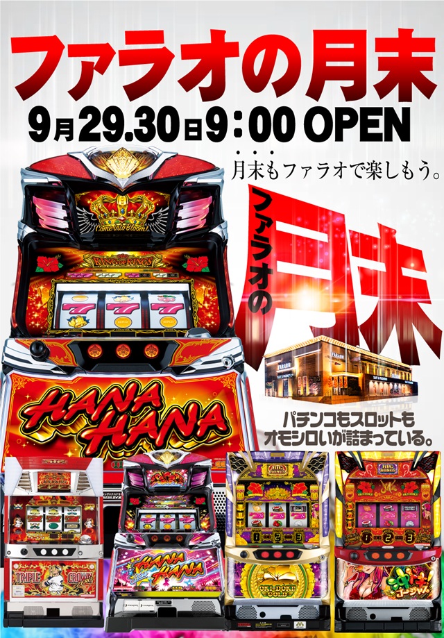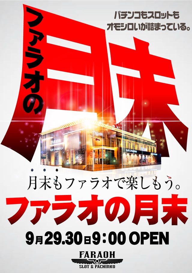 月末もファラオで楽しもう!!パチンコもスロットもオモシロい!