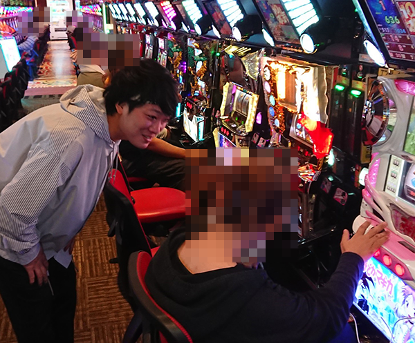 8時オープンのホールでチャレンジを失敗したことにくわえて、となりで一緒に遊技をおこなっていたプレイヤーが1万回転を達成していたことには、さすがにショックを受けていた玄之助。