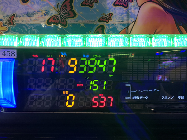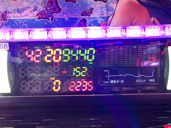 そのぶん、チャレンジがおろそかになってしまったのか、開店から7時間で消化したゲーム数は約3900G。