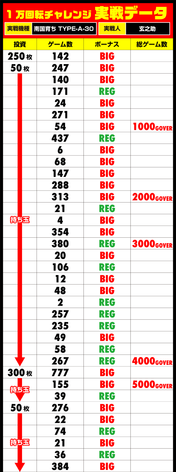 余裕の表情をみせていた玄之助もさすがにマズイと感じたのか、終盤になってようやく真剣に通常時を消化しはじめる。