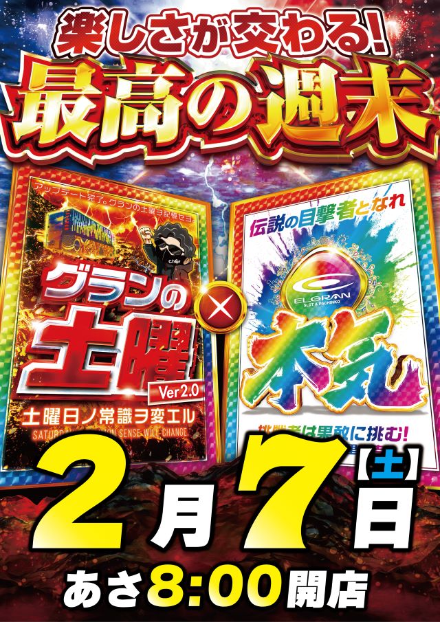 2/7(土)グランの土曜×本気×カノン来店×新台入替!