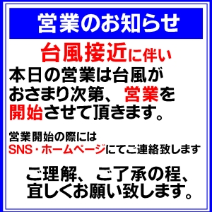 8月2日(台風接近の為、臨時閉店中)