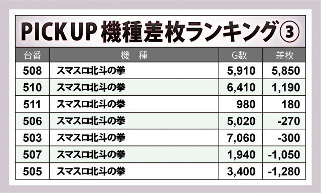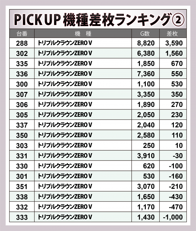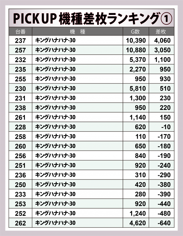 ※差枚数順に掲載しています。