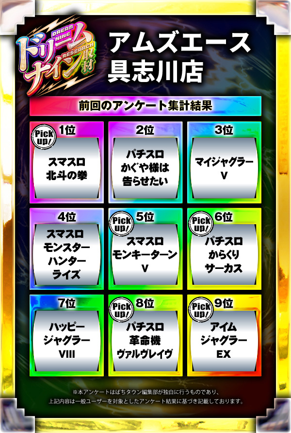 ※差枚数順に掲載しています