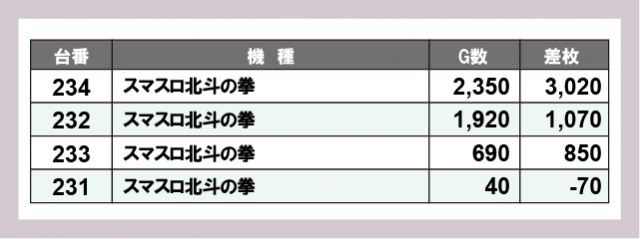 ※差枚数順に掲載しています
