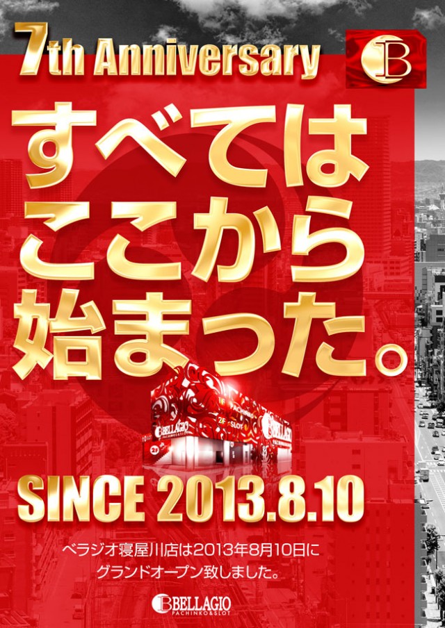 ベラジオ寝屋川店は8月10日で7周年を迎えます!