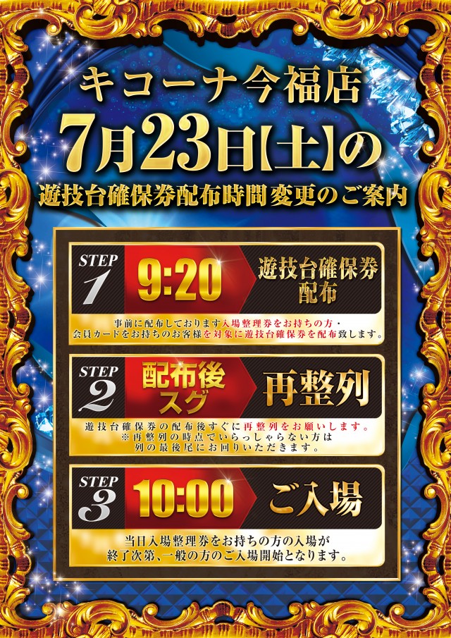 7/22(金)最新機種営業中!店内にて整理券配布中🌟