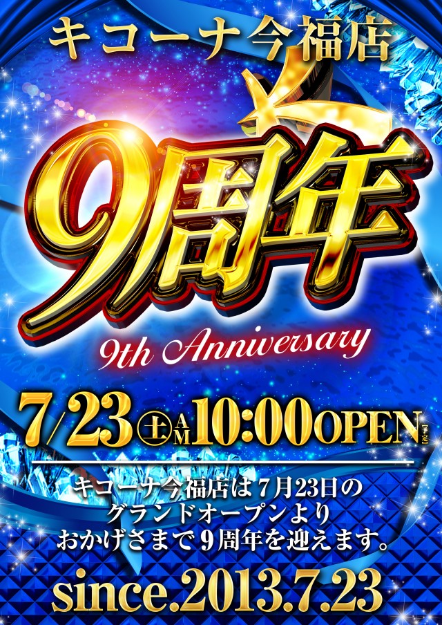 7月25日(月)10年目突入!!10時開店!!