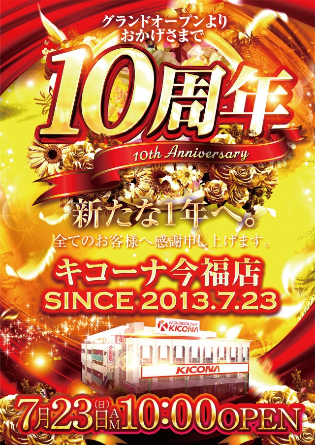 キコーナ今福店本日令和5年7月23日(日)おかげ様で【10周年】~新たな1年へ~