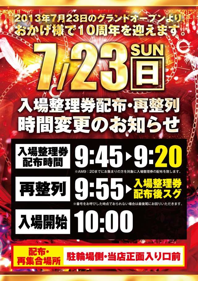 7月23日(日) ★☆おかげ様で10周年☆★10時OPEN‼