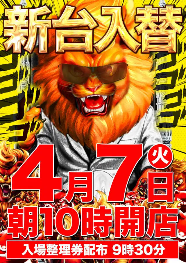 4月7日【火】新台入替初日!朝10時開店!店長ブログ朝7時更新!