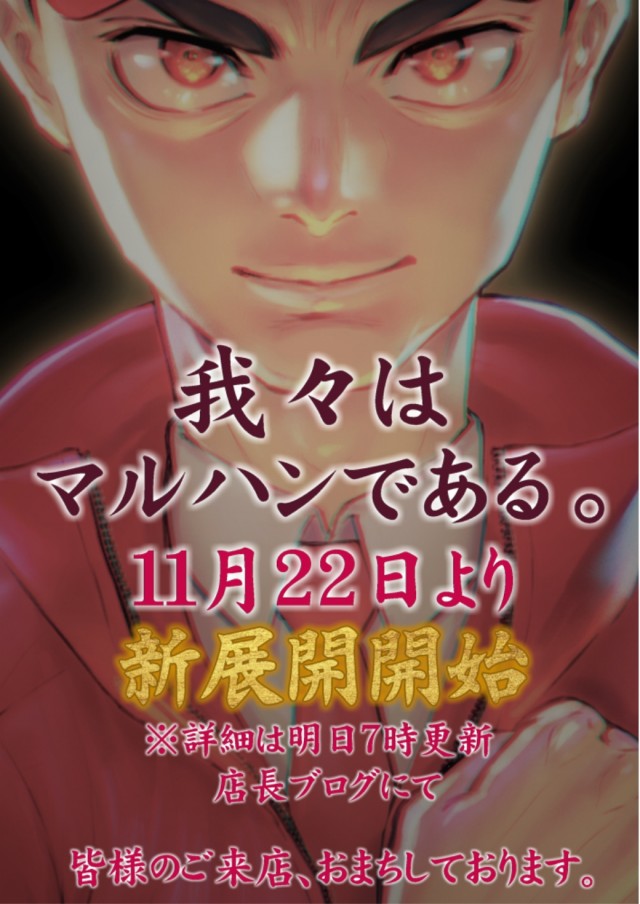 11月18日(水)新台入替完了!マネージャーブログ朝7時更新