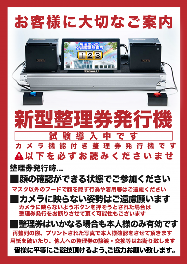 9:30までにお集まりのお客様で入場順番決めを行います。※開始時間が異なる場合は別途ご案内致します。 |
