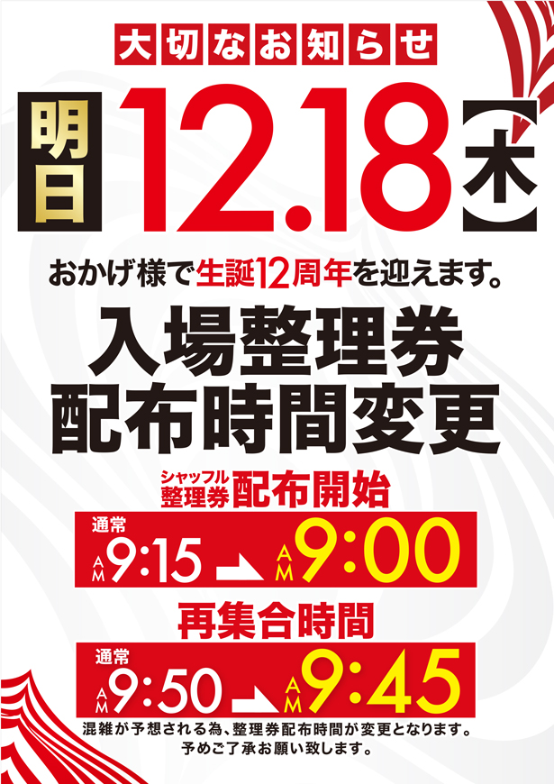 12.22(月)『 地 域 最 速 新 台 解 禁 』