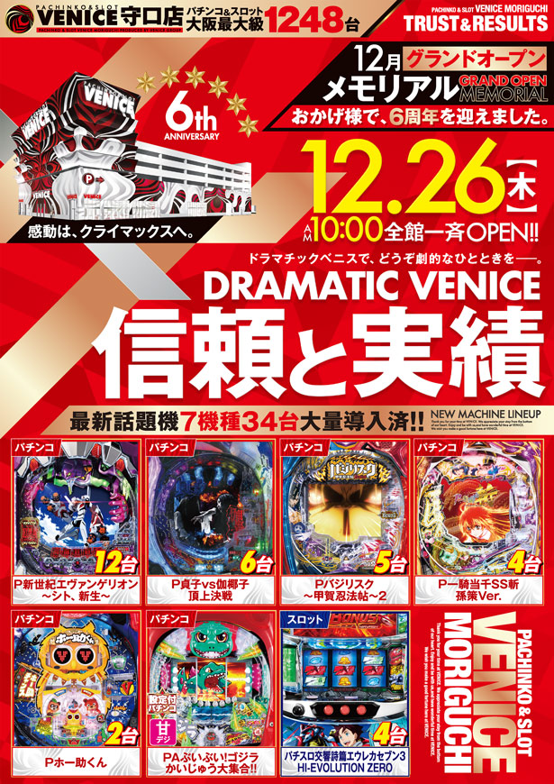 明日2.4(火)は是非!【新台入替初日】の『ベニス守口店』にお越し下さい★ -