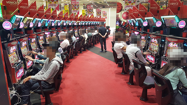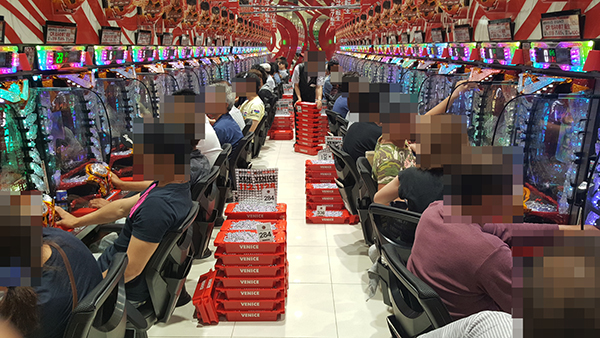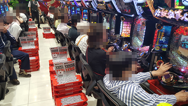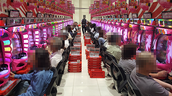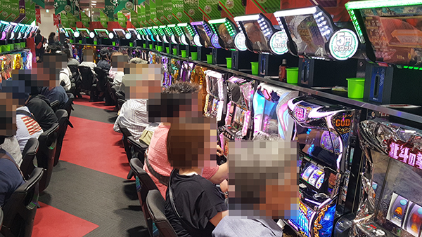 5円パチスロも支持が厚く、若年層から年配層まで幅広いプレイヤーが親しんでおり空き台が少ない。華やかな展開で遊技をおこなっているプレイヤーは、満足そうな笑みを浮かべていた。