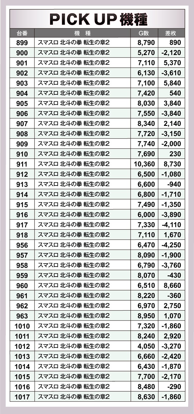その他ピックアップ全台データ