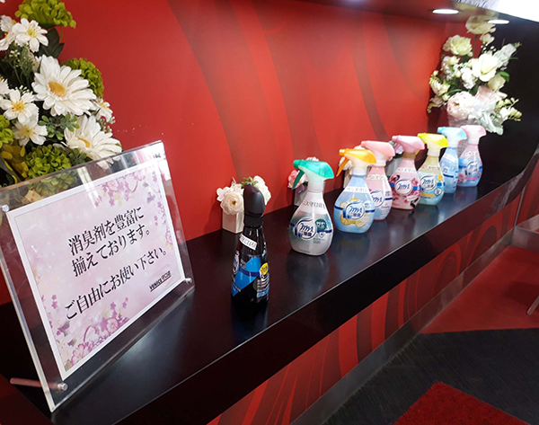 豊富なラインナップの消臭スプレーが設置されているなど、細やかな心遣いが行き届いていることも好印象。