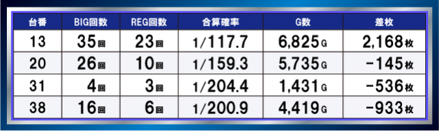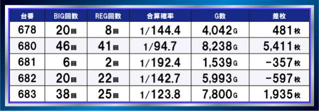 その他『ファンキージャグラー2』・『ゴーゴージャグラー3』からも2,000枚Overの差枚を記録。