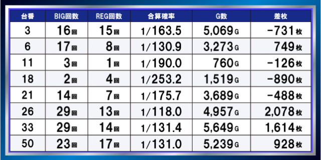 その中でも『ゴーゴージャグラー3』からは、5,000枚OVERの差枚を記録。新台解禁で力を入れた結果か、新台解禁ではない日のジャグラーの盛り上がりは今後も要注意だ!