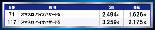 スマスロコーナーも活況を呈しており、特に『スマスロ バイオハザード5』は高い稼働率を維持した。