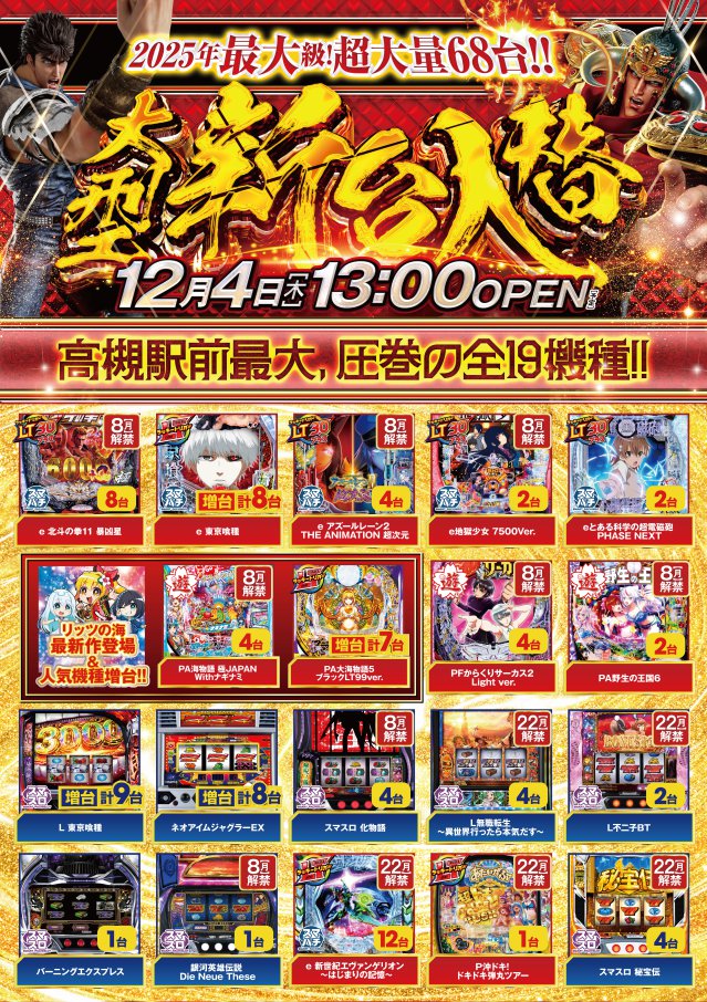 お早めにお越しください12月前半最新台
