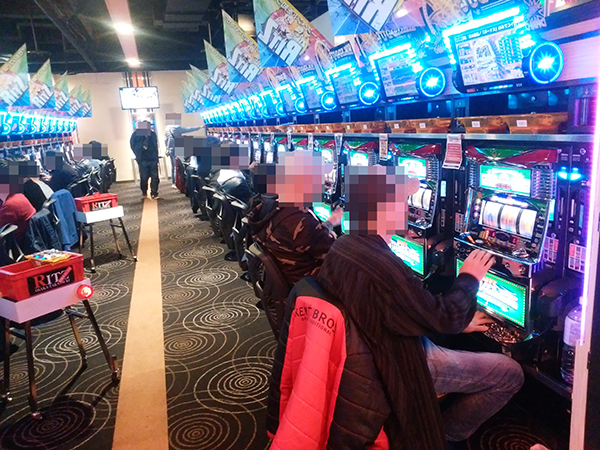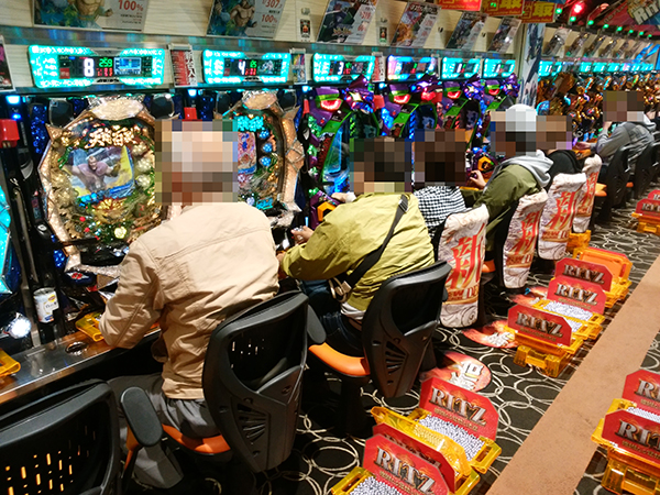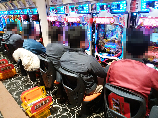 午後の4円パチンコでは、「CRヱヴァンゲリヲン 2018年モデル」や「CR喰霊-零-」などの新台をはじめ、準新台の「CRぱちんこ魔法少女まどか☆マギカ」がにぎやかな状況。機種の性能を最大限まで引き出しているといったプレイヤーの明るい表情が印象的であった。