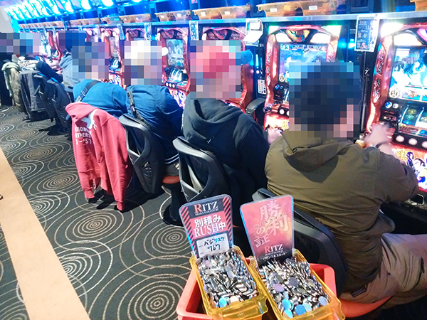 このほか、「CR牙狼GOLDSTORM翔」や「ぱちんこCR真・北斗無双」などにも煌びやかな光景を確認しており、満足そうな表情からも遊技に手応えを感じているプレイヤーも多かったように思う。