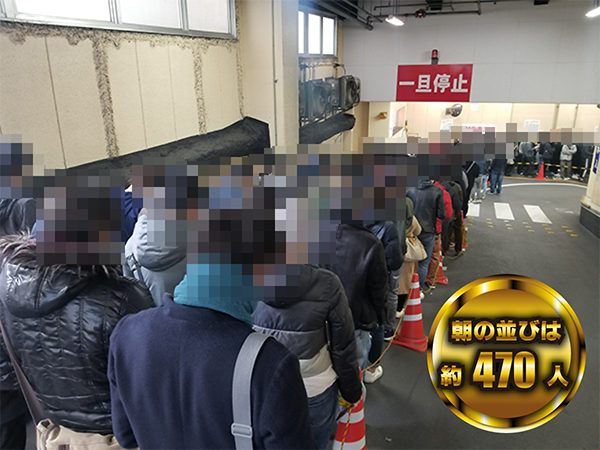 この日は、設置台数に迫る470名以上のプレイヤーが開店前から集合。開店と同時にさまざまな機種が満席となっており、いたるところが活気づいていた。