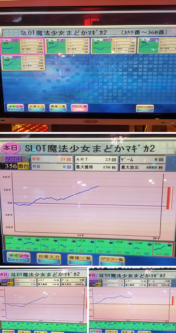 ・『SLOT魔法少女まどか☆マギカ2』は5台中4台がプラス域。3台が3000枚over