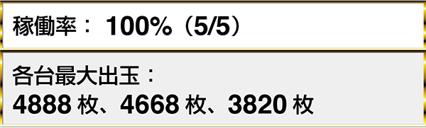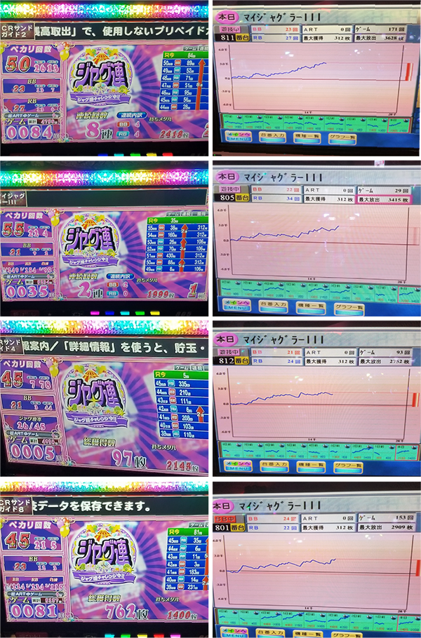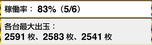 ジャグラーシリーズの稼働率も高く、『マイジャグラーⅢ』と『ゴーゴージャグラー』だけをみても、6台以上がボーナス合算確率1/120を下回っていた。