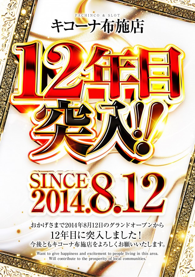 12年目突入!!AM10時OPEN!!