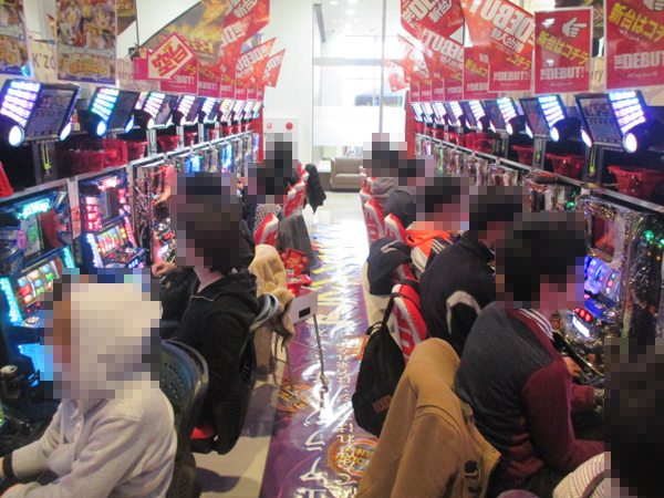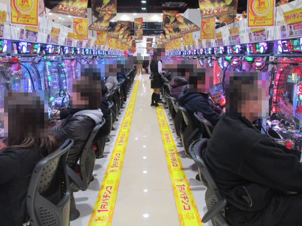 開店前は入場抽選に30名弱、一般入場に20名前後と合計で50名近くのプレイヤーが集まっていた。並びには男性が多かったが、女性専用のレストコーナーや広くとられたトイレの個室など、女性にとっても快適に遊技することができるホールだ。