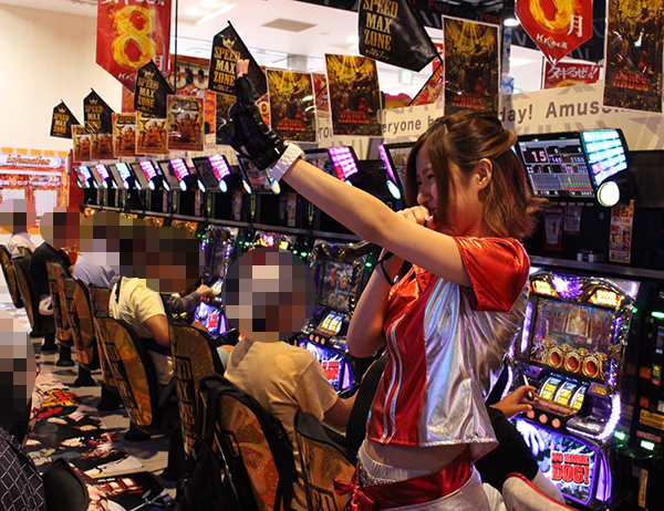 大勢のプレイヤーが遊技を楽しんでおり、ホール内はにぎやかな状況。